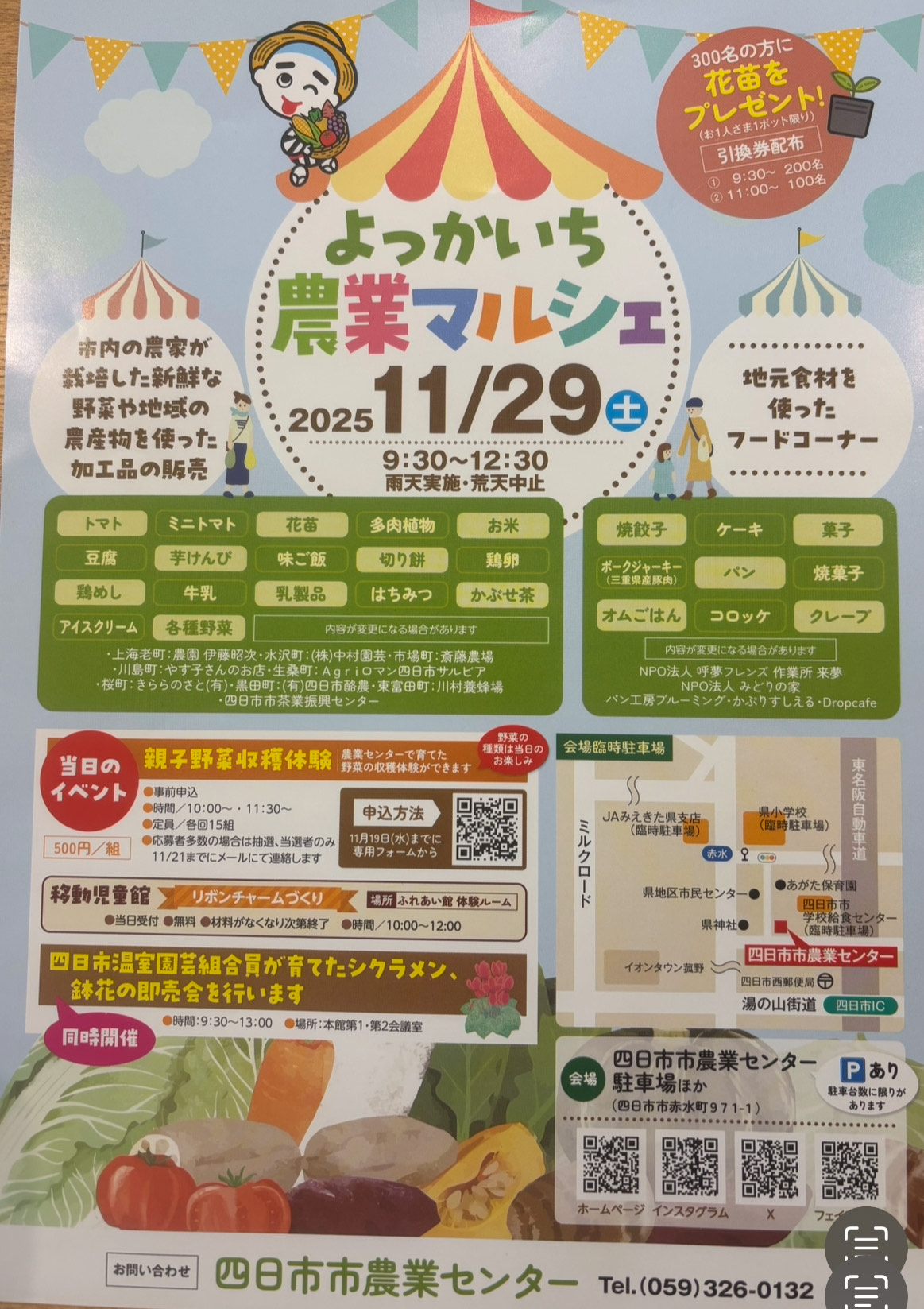 11/29(土)四日市市農業センターの農業マルシェに茶しんも出展します!お茶、アイスクリーム販売予定です!